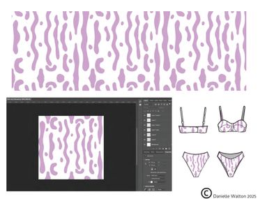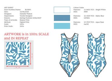 As a Women's Swim, Activewear and Resort Textile Designer, I am in tune with the fashion industry and specialise in creating stunning, on trend textile designs. I am with Adobe Suite to create unique repeat print files. Additionally, I can assist you in crafting mock-up CADs for scale reference for the fabric mills, and I create correctly spec'd art sheets that are crucial for limiting production costs and adhering to the entire production timeline.